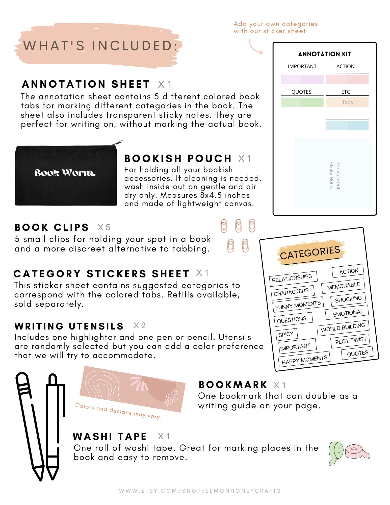 Book Annotation Kits Reading Highlighting Book Notes Etsy